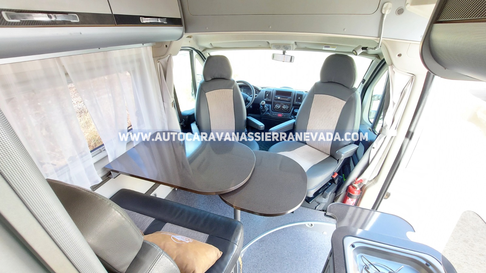 Asientos giratorios, Oscurecedores REMIS en cabina luna, Mosquiteras en ventanas, claraboyas, Claraboyas transparentes xxl , Frigo THETFORD (220v, Gas, 12v, Auto) 96L capacidad, Ducha dentro de aseo, Batería de 100ah., Placa solar de 100w., Calefacción TRUMA Combi, Herramientas/Rueda de repuesto, Escalón eléctrico de aluminio, Toldo Lateral de 3m., Baca de aluminio, Portabicis CARRY-BIKE para 2, Neumáticos reforzados marca CONTINENTAL especial camper
