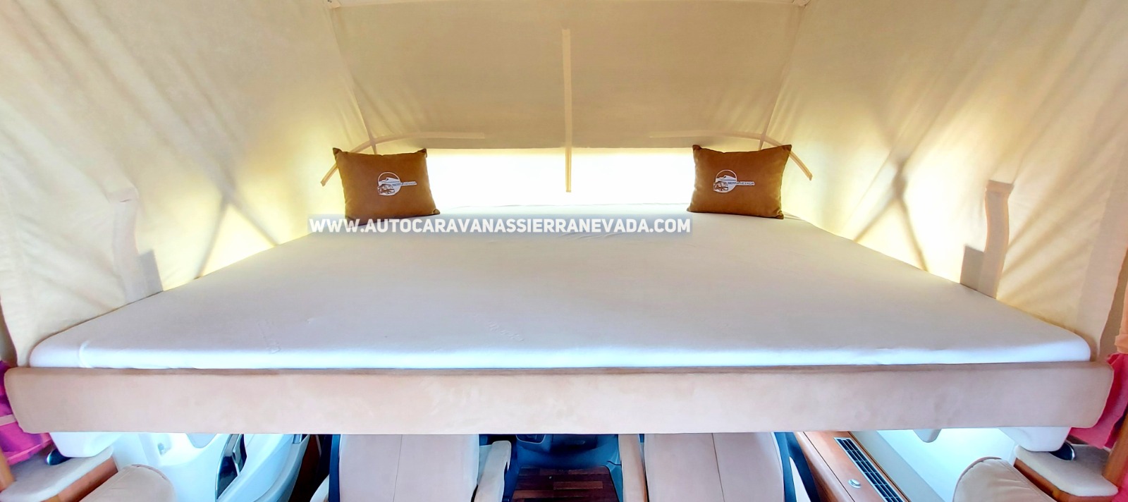 Doble acristalamiento, Espejos eléctricos, Elevalunas eléctricos(conductor), Radio (CD-MP3-AUX-BT-DVD), Cámara de visión trasera, Asientos  giratorios, Oscurecedores REMIS en cabina completa, Mosquiteras en ventanas, claraboyas y puerta principal, Claraboyas transparentes y Claraboya xxl en salón, Frigo DOMETIC (220v, Gas, 12v, Auto) 150L capacidad, Horno, Extractor de humos