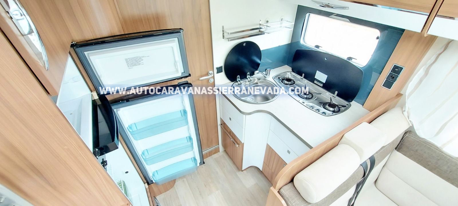 Claraboyas transparentes y Claraboya XXL en salón, Frigo THETFORD (220v, Gas, 12v, Auto) 149L capacidad,   Ducha con mampara separada de aseo, 2 Batería de 100 ah.,Placa solar de 100w., Calefacción TRUMA Combi, Antena TDT Mástil, Escalón de aluminio manual, Toldo THULE OMNISTOR de 4 m, Porta bicis THULE para 4, Neumáticos  reforzados marca CONTINENTAL especial cámper.