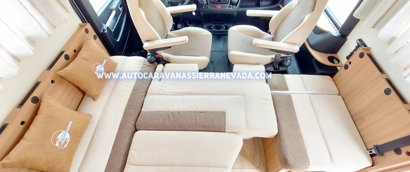 Extras: Aire acondicionado(de motor), Airbags (conductor y copiloto), Velocidad de Crucero. Cierre centralizado, Elevalunas eléctricos (solo conductor), Espejos eléctricos, Radio (CD-MP3-AUX-USB-BT), Cámara de visión trasera, Asientos giratorios, Oscurecedores REMIS en cabina completa, Mosquiteras en ventanas, claraboyas y puerta principal.