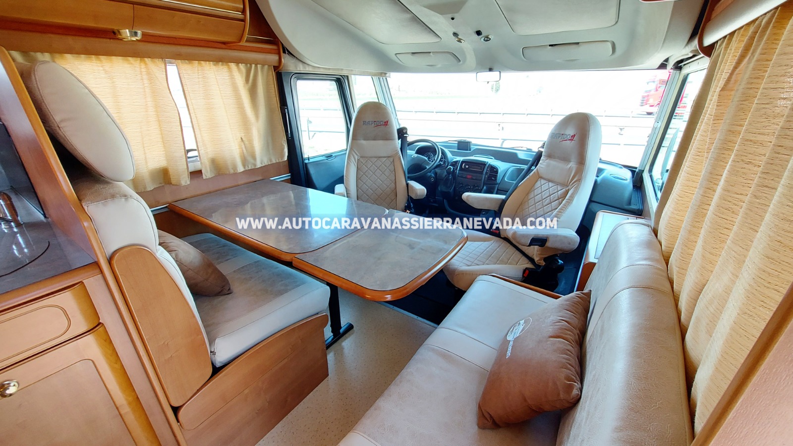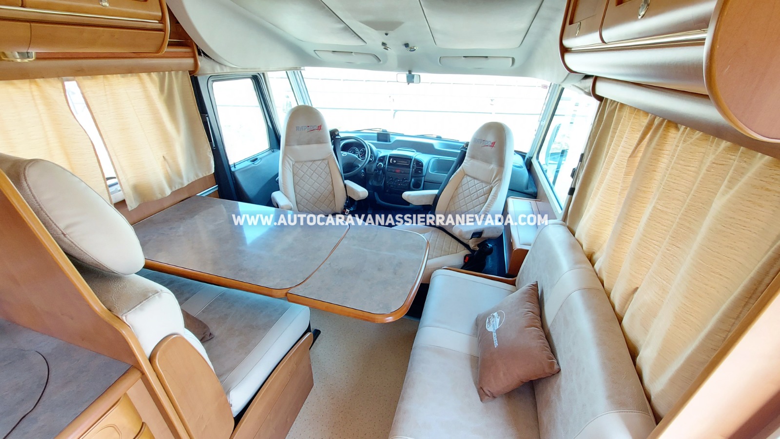 Autocaravana Integral RAPIDO, modelo 985F, una de las mejores marcas por sus acabados de mucha durabilidad y calidad, similar a Hymer, Niesmann Bischoff, Burstner, Euramobil o Dethleffs entre otras. Del año 2005 con 147.000km. Motor Fiat Ducato 2.8 JTD 145cv, motor potente y constante. *Chasis ALKO y *eje con barras de torsión (mucho mejor que la suspensión de ballestas. Con 4 plazas homologadas para viajar y dormir gracias a sus camas: colgante sobre la cabina y Francesa detrás, ambas dobles y muy amplias. Un vehículo ideal para gente que quiere una autocaravana muy cómoda de llevar y entrar en aparcamientos reducidos, se conduce igual que un turismo, Medidas: (6,70m x 2,85m).Dispone de un Garaje muy amplio con unas medidas: (2,00m x 1,70m x 0,90m) al cual podrás acceder tanto del interior como por exterior del vehículo.