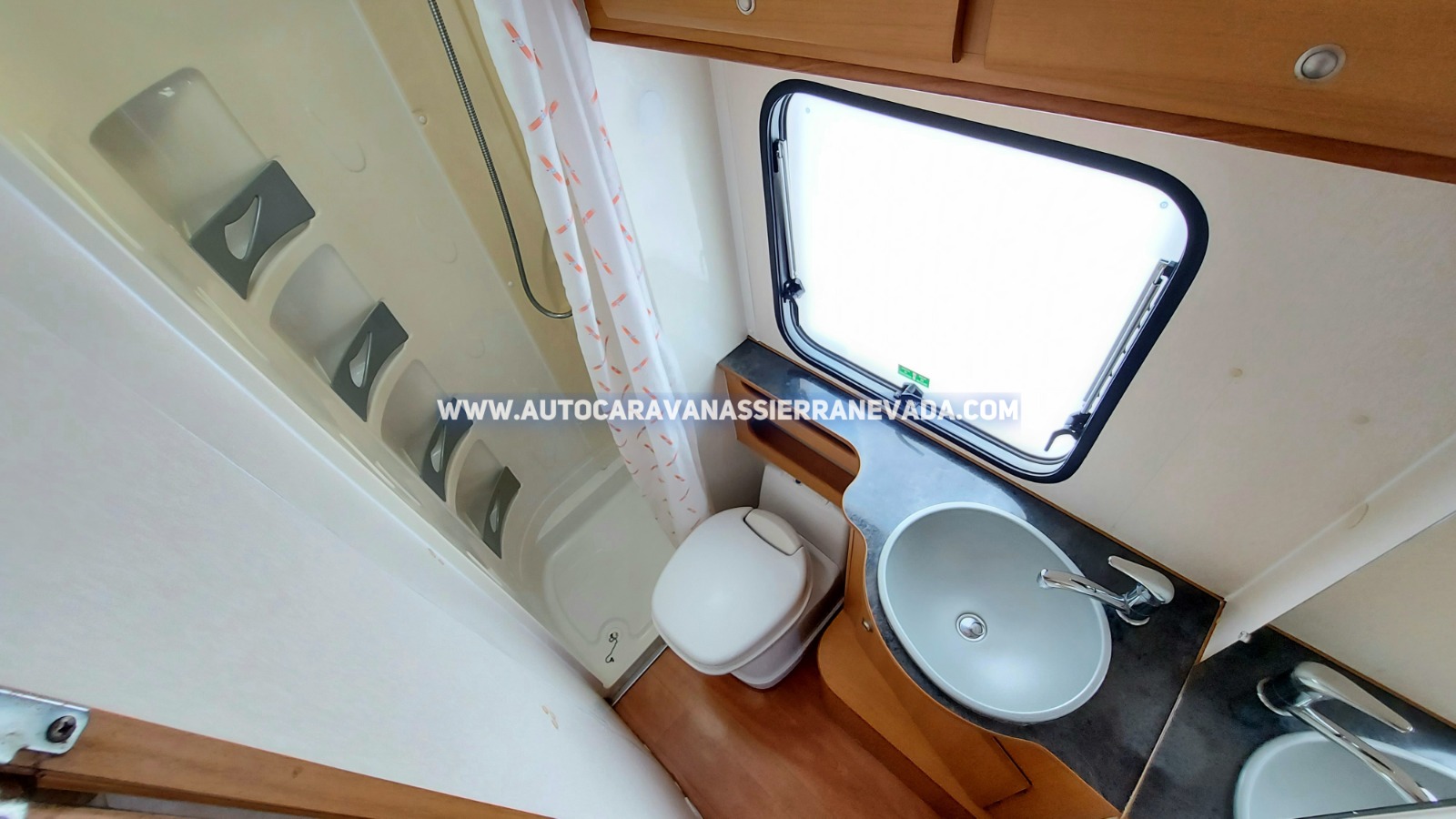 Aire acondicionado (de motor), Radio (CD), Asientos giratorios, Mosquiteras en ventanas y claraboyas, Claraboya XXL en salón, Frigo DOMETIC (220v, Gas, 12v) 87L capacidad, Ducha con mampara dentro de aseo, Batería AGM de 95ah., Placa solar de 200w., Calefacción Trumatic C, Herramientas y Rueda de repuesto, Escalón eléctrico de aluminio, Toldo OMNISTOR de 2,5m., Portabicis para 2, Neumáticos reforzados marca MICHELIN especial camper