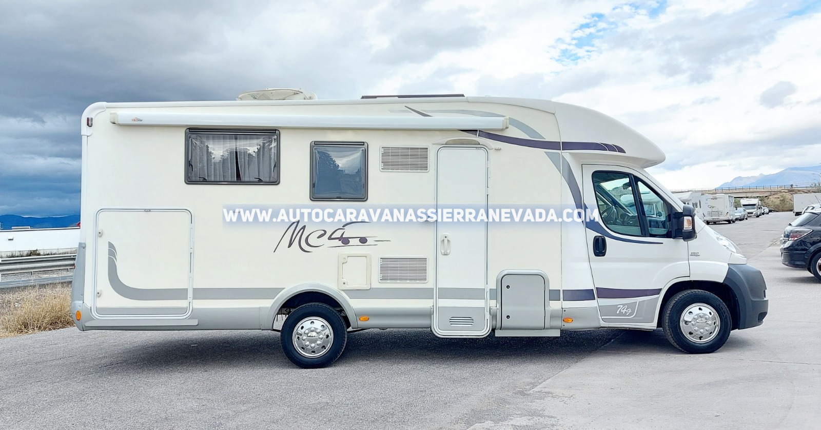 Autocaravana Perfilada de la marca McLouis, modelo MC4 – 74G. Una de las marcas más valoradas por su dureza en su construcción, durabilidad, comodidad y seguridad. Del año 2012 con 96.000km. Con motor Fiat Ducato 2.3 MultiJet 130cv y 6 velocidades. Un motor moderno, muy fiable y de mantenimiento sencillo. (*Kit correa distribución cambiada con 78.929 en 2020). Con Suspensión Neumática con autoinflado desde cabina. Dispone de 4 plazas homologadas en documentación para viajar y dormir gracias a sus siguientes camas: Isla elevable manual en la parte trasera este tipo de cama también le proporciona una gran comodidad en todos los aspectos, tanto al hacerla como acostarse por ambos lados e incluso no molestar al otro al levantarse, además de conseguir un diseño muy selecto y cotizado en su interior y Colgante en salón. Con un Garaje muy espacioso con doble portón sus medidas son: (2,20 largo x 1,10 ancho x 1,10alto) donde podrá llevar bicicletas. Un vehículo muy bien distribuido y espacioso, perfecta para hacer viajes de larga estancia y vivir en ella, sus medidas: (7,40m x 2,90m).