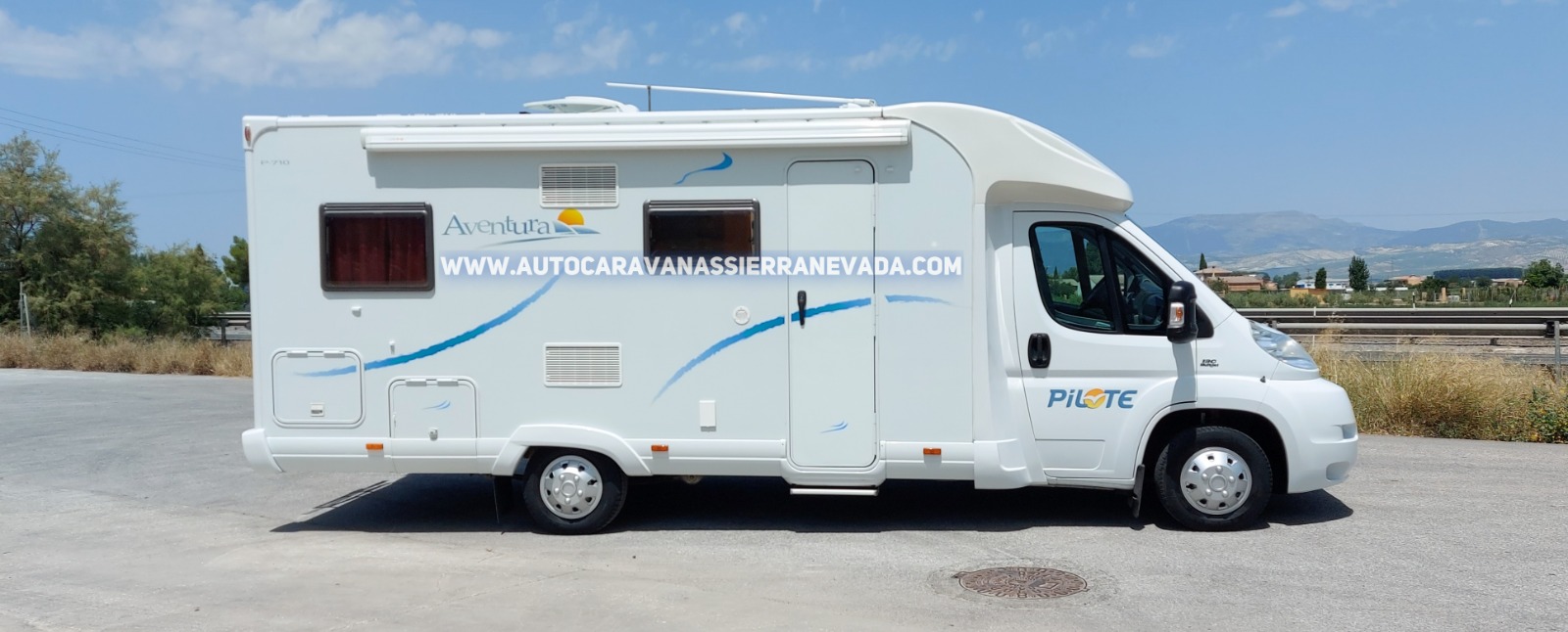 Autocaravana Perfilada  PILOTE, modelo Aventura P.710. Una de las marcas más valoradas por su diseño y dureza en su construcción, situada en el mercado entre las mejores de Europa. Del año 2007, con facturas y revisiones que certifican los 99.000kmMotor Fiat Ducato 2.3 MultiJet 130cv y 6 velocidades, muy duro y de fácil mantenimiento. Con 4 plazas homologadas para viajar y dormir gracias a sus camas: *Camas Gemelas  en la parte trasera y Salón convertible. Gracias a su interior tan amplio, esta increíble autocaravana es ideal para hacer grandes viajes dadas sus medidas: (7,20m x 2,80m). Maletero exterior con doble puerta muy espacioso: (2,20m x 1,90m x 0,60m). A petición del nuevo comprador se pude hacer una ampliación en las camas gemelas, para conseguir una cama xxl.