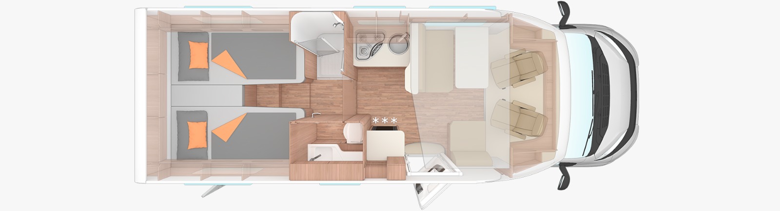 Calefacción TRUMA Combi inet ready, Escalón eléctrico de aluminio, Toldo THULE OMNISTOR de 3,5m., Portabicis THULE para 4, 3 Cierres de seguridad THULE, Neumáticos reforzados marca CONTINENTAL especial camper